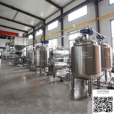 ピーナッツバターの冷却/混合タンクは,最適な冷却効率と省エネのために3層の設計で食品級のステンレス鋼で作られています.この装置は,粉砕後の混合プロセス中にピーナッツバターの温度を効果的に低下させ,完全な生産ラインの重要な部品として機能します.