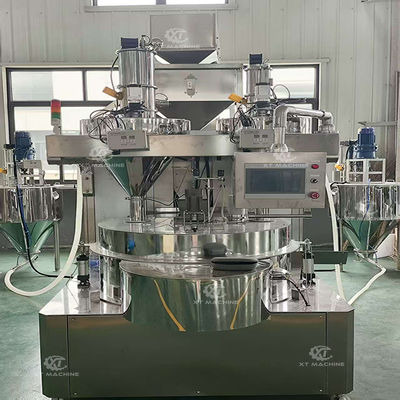 溶液は、容積式ポンプを介して高速回転ディスクタイプの液体アプリケーターに送られ、粉末は一方通行のディスペンサーを介して交互のサイクルで供給されます。乾燥粉末成分ディスペンサーも利用可能です。サイクル時間は、製品の種類と添加される成分の量によって異なります。