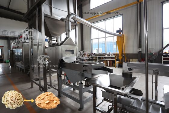 ブラッシャーとグラインダーシステムを統合した、ピーナッツ、ゴマ、アーモンド、ピスタチオペーストの完全な製造プラント。