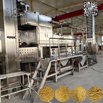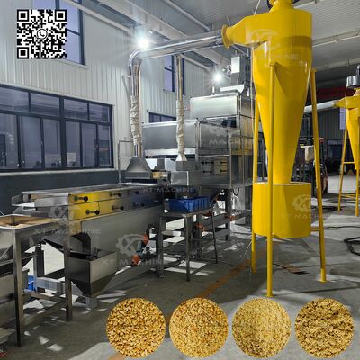 この機械には 洗練された2段階の切断システムがあります 割った白くされたピーナッツは 垂直コンベヤーで 切断機に入れます最初の切断装置で最初は粗い粒に切る. 材料は,混ぜた粒剤として,次期切断プロセスに流れます. 組み込み振動シッターを使用して,切断された材料は4つの統一仕様に分類されます:5-8 メッシュ粉末の質感 (粉末の質感)