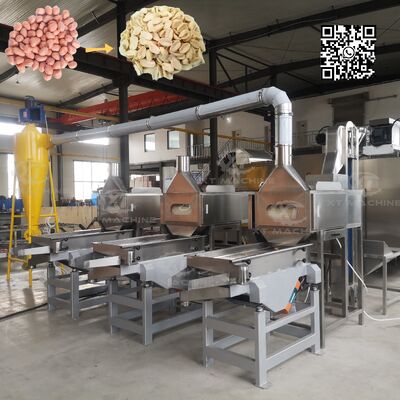 このピーナッツ二分割機は、焙煎したピーナッツを半分またはそれ以下のサイズに分割し、同時に空気サイクロンシステムを通じて赤皮を除去するように設計されています。この特殊なブランシングプロセスは、ピーナッツカーネルを最小限の破損で効果的に処理します。